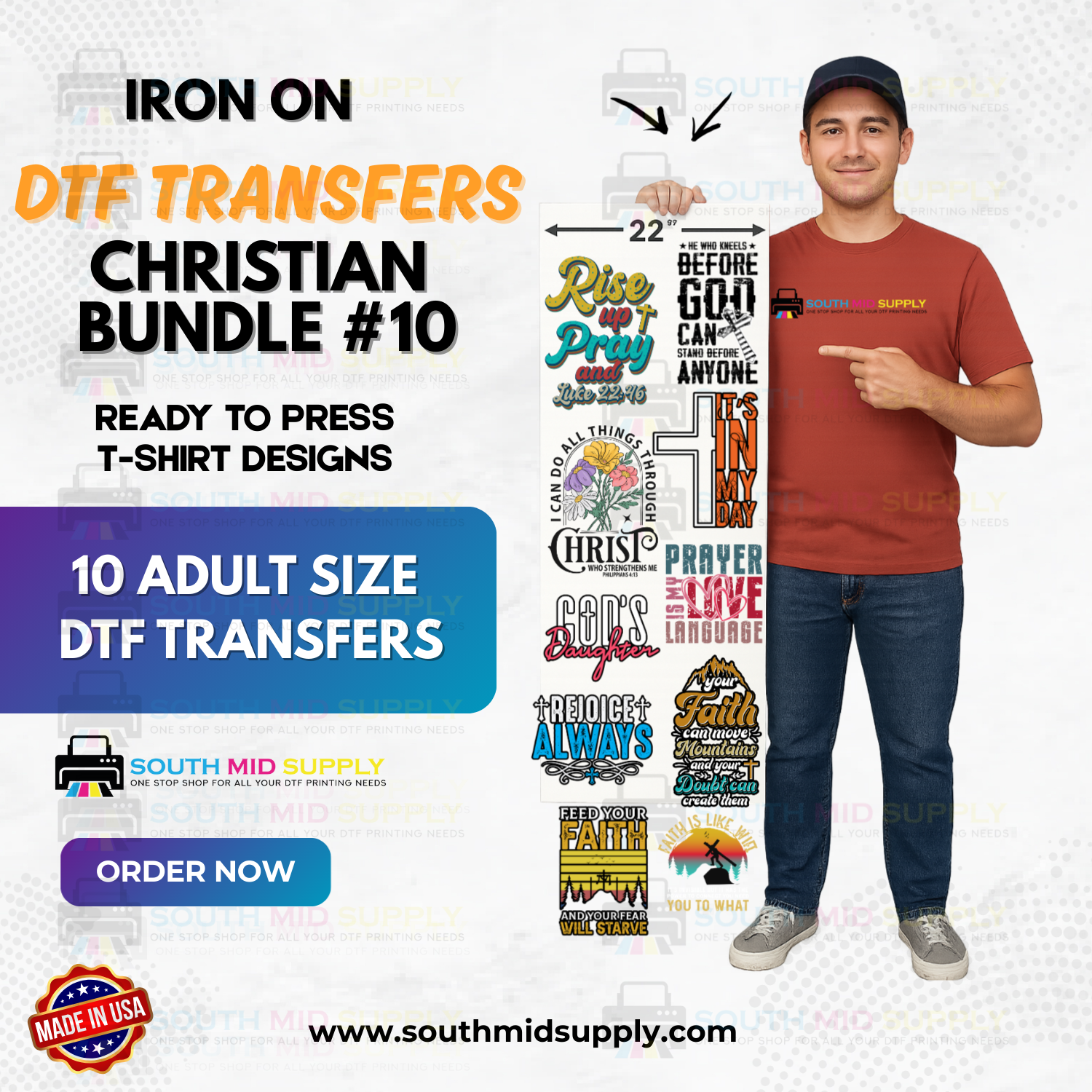 Christian Bundle #10 – Hope, Grace & Encouragement (22″ Gang Sheet, 10 Transfers)