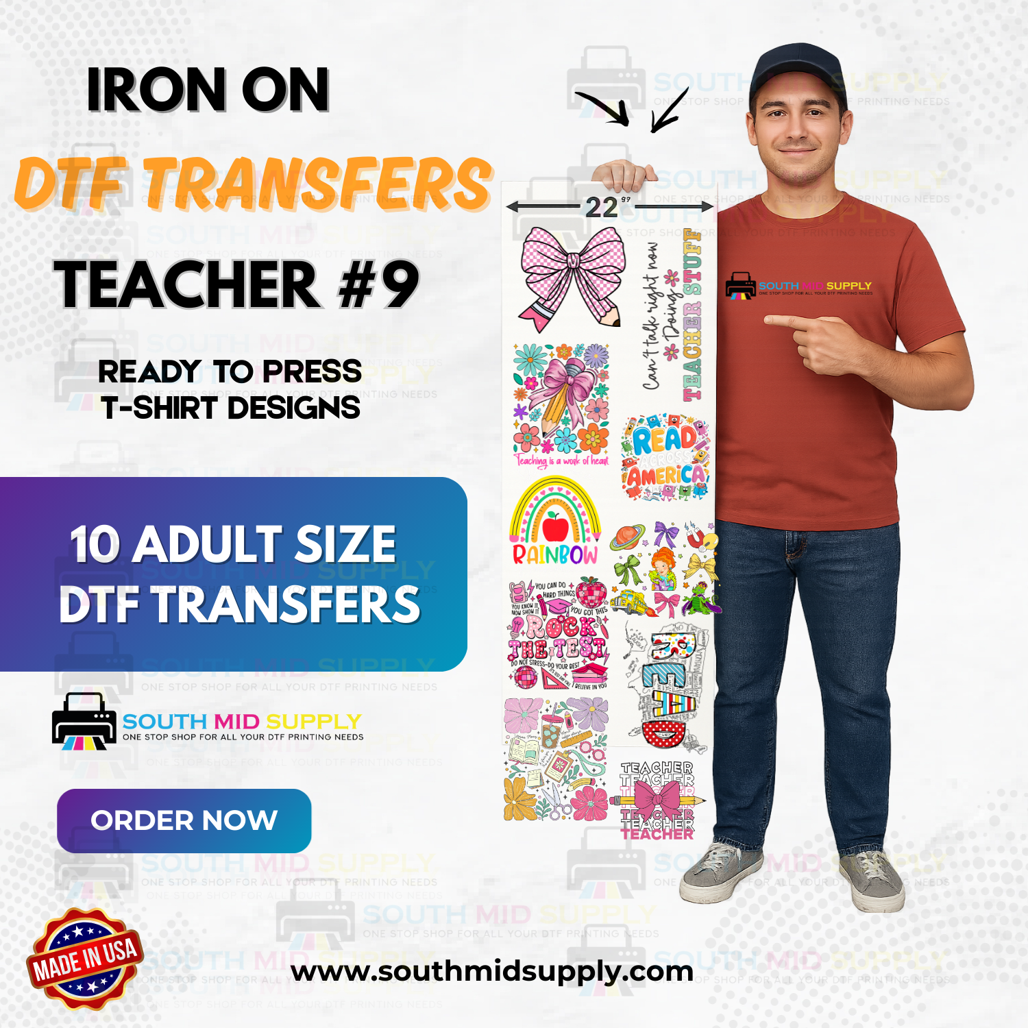 Pre-press 3–5s → 295–305°F • 10–12s (tees) / 12–15s (fleece) • medium → peel per film → post-press 5–8s. Same-day pickup.