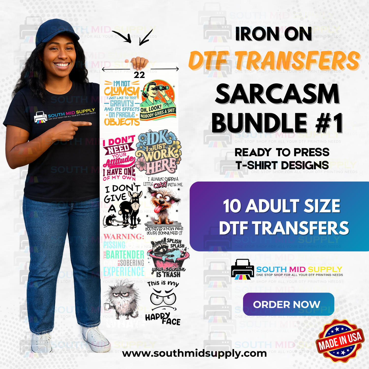Sarcasm Bundle #1 – Everyday Snark Essentials (22″ Gang Sheet, 10 Transfers)